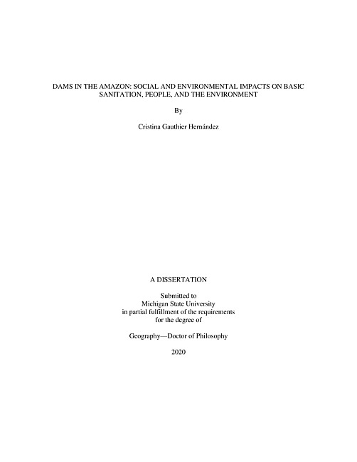 Dams in the Amazon : social and environmental impacts on basic sanitation, people, and the environment