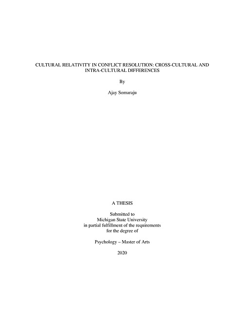 Cultural relativity in conflict resolution : cross-cultural and intra-cultural differences