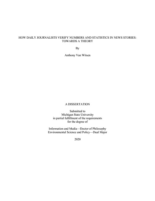 How daily journalists verify numbers and statistics in news stories : towards a theory