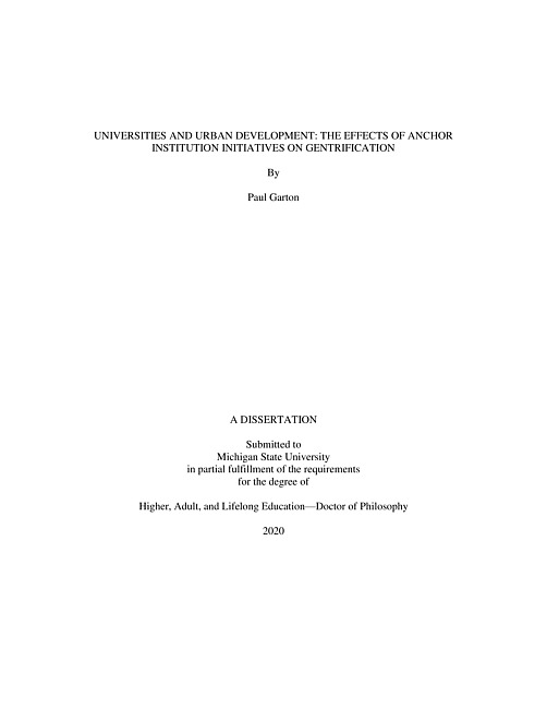 Universities and urban development : the effects of anchor institution initiatives on gentrification