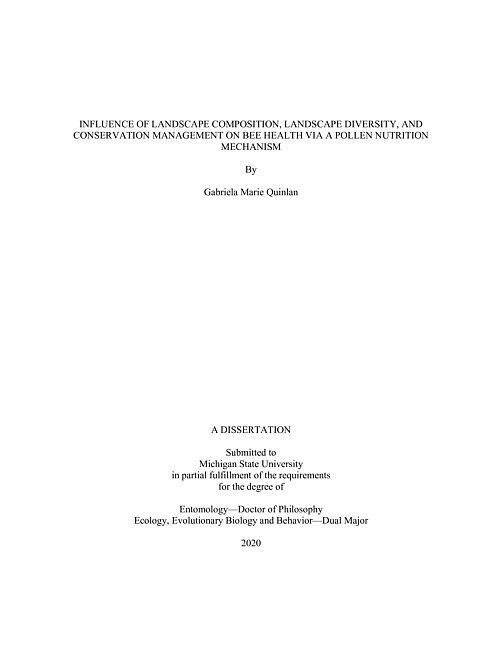 Influence of landscape composition, landscape diversity, and conservation management on bee health via a pollen nutrition mechanism