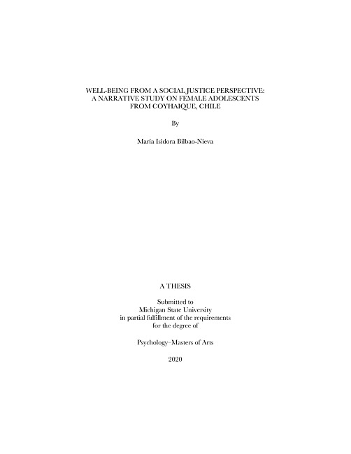 Well-being from a social justice perspective : a narrative study on female adolescents from Coyhaique, Chile