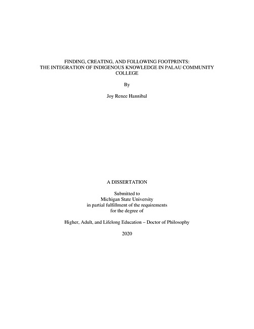 Finding, creating, and following footprints : the integration of indigenous knowledge in Palau Community College