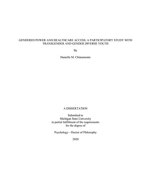 Gendered power and healthcare access : a participatory study with transgender and gender diverse youth