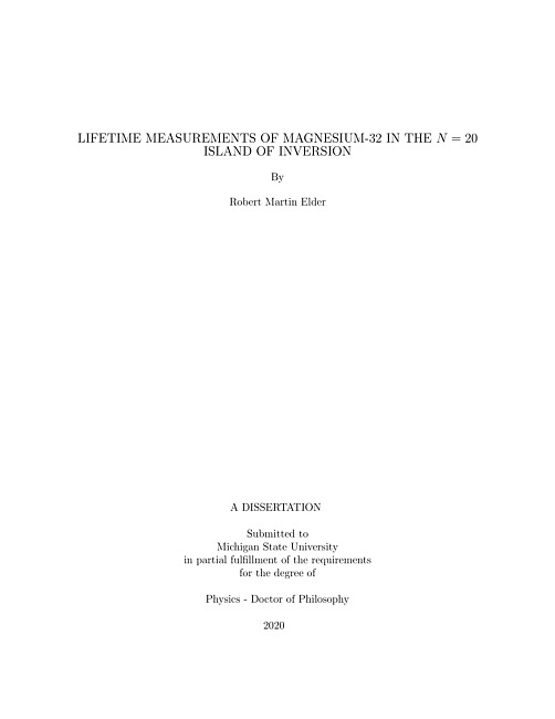 Understanding how nuclear shell structure and magic numbers emerge near stability but change as nuclides move away from stability is one of the main goals of modern nuclear structure studies. The N = 20 island of inversion is one of the oldest and best-studied examples of a magic number disappearing in exotic isotopes, but new observations are still emerging. Nuclides in this region exhibit collective behavior driven by the neutron particle-hole intruder configurations across the reduced gap between the sd and pf shells. The assignment of the 32Mg nuclide to the N = 20 island of inversion is supported from studies of the mass, excited states, and transition rate to the 2+1 state of 32Mg. However, a complete understanding of this classic island of inversion nuclide is still a challenge. The 0+2 state of 32Mg was observed at a lower energy than many models predicted, leading to a reinterpretation of the collectivity in 32Mg. Reduced transition rates are valuable observables to characterize collectivity. However, precise measurements of the reduced E2 transition rates in 32Mg are still needed to test the validity of recent theoretical calculations.This dissertation reports the results from an experimental study of the collectivity in 32Mg. The present work includes lifetime measurements for the lowest 0+, 2+, and 4+ excited states in 32Mg which are used to determine the reduced E2 transition rates. Lifetime measurements were performed using two different and complementary experimental approaches. First, the TRIPLEX device was used along with the Recoil-distance Method and Doppler-shift Attenuation Method to measure the lifetimes of the short-lived 2+1 and 4+1 states in 32Mg. The results reinforce the evidence from the energy systematics and earlier B(E2) measurements which suggests that the ground-state band in 32Mg is collective. Second, a novel in-flight technique referred to here as the Cascade Doppler-shift Method was used to observe decays from the 0+2 isomer in 32Mg. The 0+1 state was confirmed and the measured lifetime suggests a large collectivity in this state as well. The small partial cross section populating the 0+1 state in the 9Be(34Si,32Mg)X reaction provides experimental evidence for the dominance of intruder configurations in the 0+2 state.In summary, the lifetime measurements presented in this dissertation indicate the collectivity in 32Mg driven by intruder configurations that dominate the ground state as well as low-lying excited states. Experimental methods based on in-flight Doppler-shift techniques are demonstrated in this work and highlight how a broad range of lifetimes from 1 ps to tens of ns can be measured in rare-isotope beam experiments.
