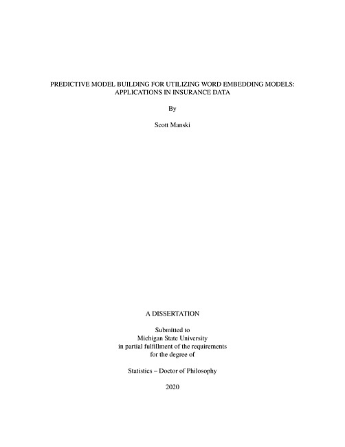Predictive model building for utilizing word embedding models : applications in insurance data