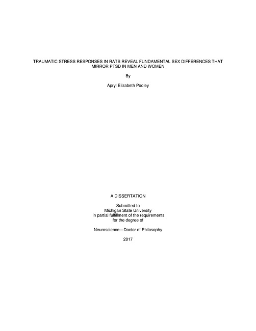 Post-traumatic stress disorder (PTSD) develops after exposure to trauma and is associated with dysfunction in the normal stress response. Women are twice as likely as men to develop PTSD and tend to experience different symptoms and comorbidities than men, but the neurobiological basis for these pervasive sex differences is poorly understood due to the overwhelming male bias in the preclinical research. My dissertation work tested the novel hypothesis that the neurobiological mechanisms underlying the traumatic stress response in male and female rats are fundamentally different and may be related to normal sex differences in circulating levels of adult gonadal hormones. These experiments are the first to compare adult male and female rats across two rodent models of PTSD, single prolonged stress and predator exposure. I report a highly sex-specific traumatic stress response that recapitulates fundamental differences of PTSD in men and women. Surprisingly, these sex differences were largely independent of adult circulating gonadal hormones, housing conditions, and types of stress. Two standard measures, the acoustic startle response and dexamethasone suppression test to measure the negative feedback control of the stress hormone response, suggest that female rats, unlike male rats, are resilient to the effects of traumatic stress. However, other measures like sucrose preference and social interaction make it clear that females are not resilient, but simply respond differently to trauma than males. Dramatic sex differences in how trauma affects cFos activation and glucocorticoid receptor expression in the brain lend further support to the idea that the trauma response of males and females is fundamentally different, and likely determined prior to adulthood. Factors that mediate differences in how individuals adjust after trauma are attractive targets for the prevention and treatment of PTSD, and identifying such factors of resilience depends on understanding the various ways the traumatic stress response manifests in different individuals. I propose that sex differences offer a promising inroad for addressing this issue.