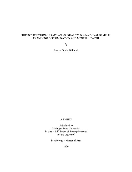 The intersection of race and sexuality in a national sample : examining discrimination and mental health