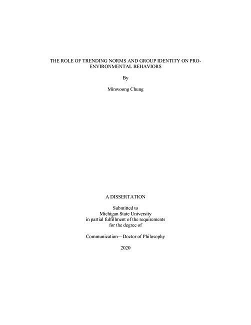 The current study investigates the influence of trending norms messages on behavioral intention via perceived future descriptive norms in the context of two different pro-environmental behaviors. This study also examines the moderating role of group identity in the relationship between trending norms and behavior. The findings show that the effect of trending norms messages on behavioral intention is mediated by perceived future descriptive norms. In addition, the pattern of the trending norms message effect is dependent on group identity. Theoretical and practical implications are discussed.