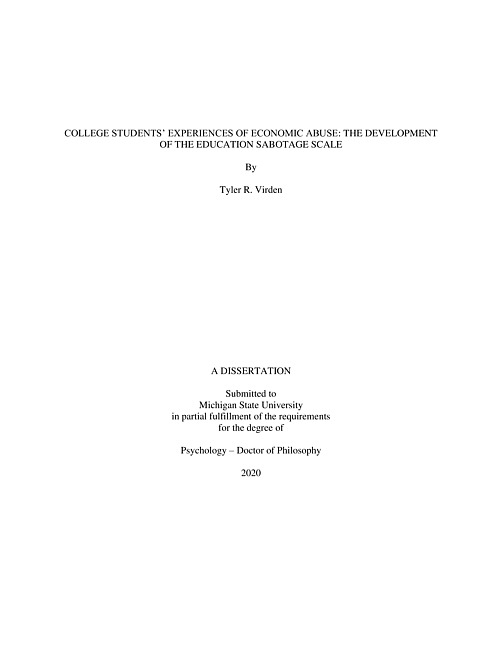 College students' experiences of economic abuse : the development of the education sabotage scale