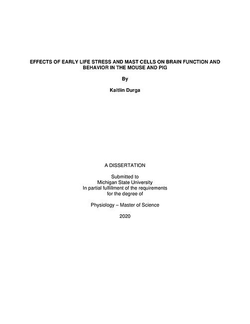 Effects of early life stress and mast cells on brain function and behavior in the mouse and pig