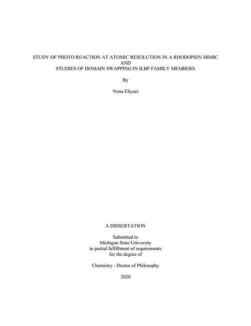 Study of photo reaction at atomic resolution in a rhodopsin mimic and studies of domain swapping in ILBP family members