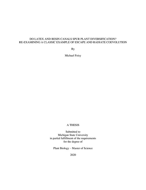 Do latex and resin canals spur plant diversification? : re-examining a classic example of escape and radiate coevolution