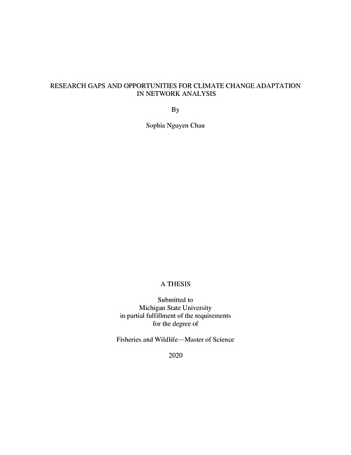 Mitigating the negative impacts of climate change such as sea level rise, drought, and species extinction requires effectively mobilizing social and ecological resources across geographic distances. Climate change adaptation practitioners need to understand climate change from a systems perspective, whereby the ecological and social components involved are viewed as interacting and interrelated components of a system that together yield consequences for both human and non-human life. Network analysis, a set of techniques that allows for quantitative and qualitative depiction of the relationships between system components and how they give rise to emergent phenomena, has the potential to help address contemporary sustainability challenges such as climate change adaptation. Adaptation practitioners have already begun using network analysis with the goal of improving their adaptation efforts, but the literature to guide their practice is young. The first chapter of my thesis addresses this problem by reviewing network analysis studies about climate change adaptation. I identified research gaps and opportunities related to the type of network analysis, adaptation sectors, geographic scale, number of systems, study objectives, and proposed network interventions. In the second chapter, I developed a framework called the metacoupled network approach that can help network analysis studies address these research gaps. Such a framework will not only guide network analysis studies in climate change adaptation but also provide a useful framework for understanding other complex social-ecological challenges.