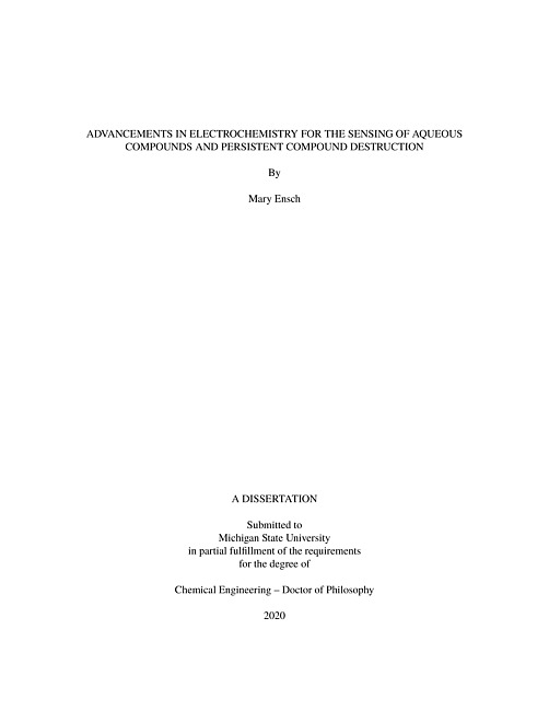 Advancements in electrochemistry for the sensing of aqueous compounds and persistent compound destruction