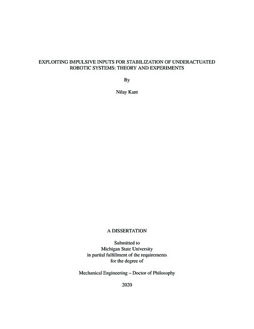Exploiting impulsive inputs for stabilization of underactuated robotic systems : theory and experiments