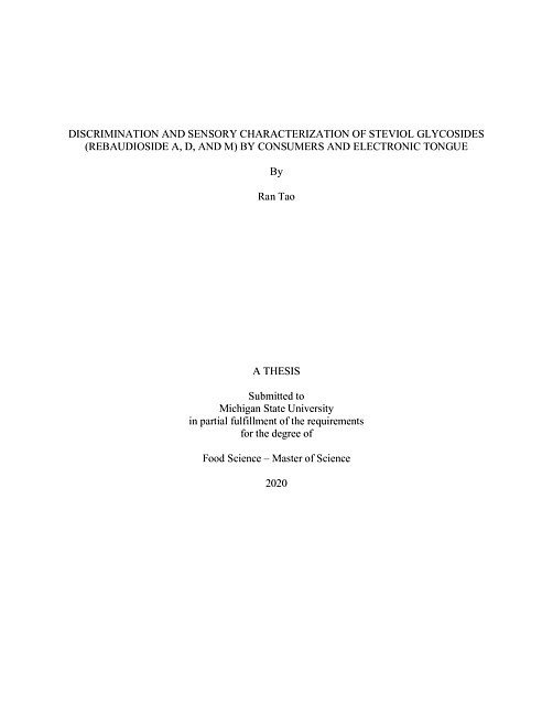 Discrimination and sensory characterization of steviol glycosides (rebaudioside A, D, and M) by consumers and electronic tongue