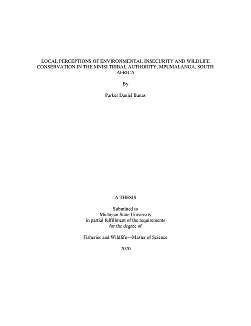 Local perceptions of environmental insecurity and wildlife conservation in the Mnisi Tribal Authority, Mpumalanga, South Africa