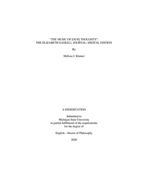 "The music of [our] thoughts" : the Elizabeth Gaskell journal: digital edition