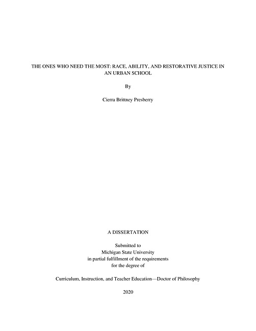 The ones who need the most : race, ability, and restorative justice in an urban school