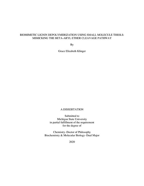 Biomimetic lignin depolymerization using small molecule thiols : mimicking the beta-aryl ether cleavage pathway