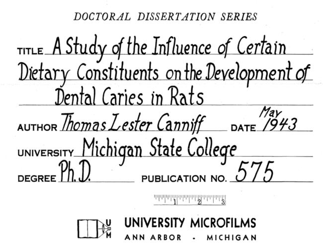 A study of the influence of certain dietary constituents on the development of dental caries in rats