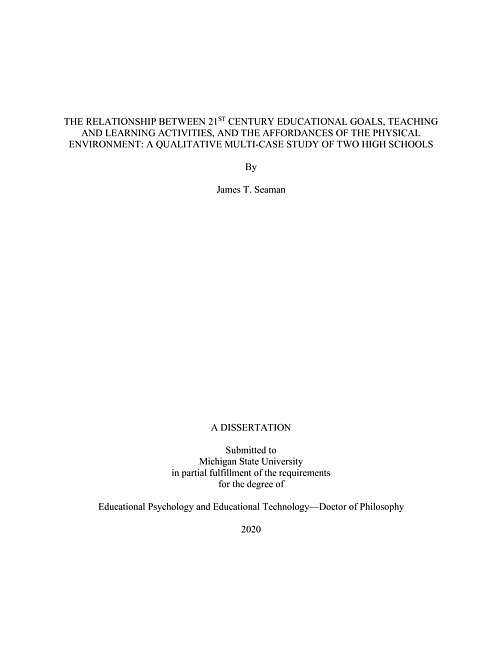 The relationship between 21st century educational goals, teaching and learning activities, and the affordances of the physical environment : a qualitative multi-case study of two high schools