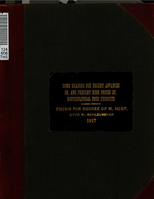 Some reasons for recent advances in, & present high prices of, horticultural food products