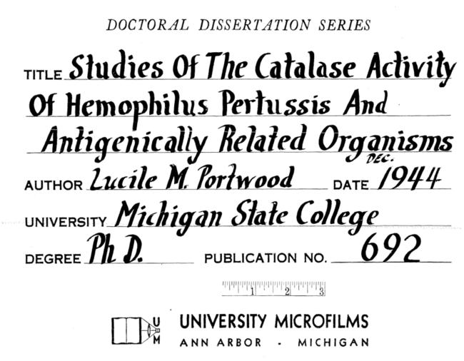 Studies on the catalase activity of Hemophilus pertussis and antigenically related organisms