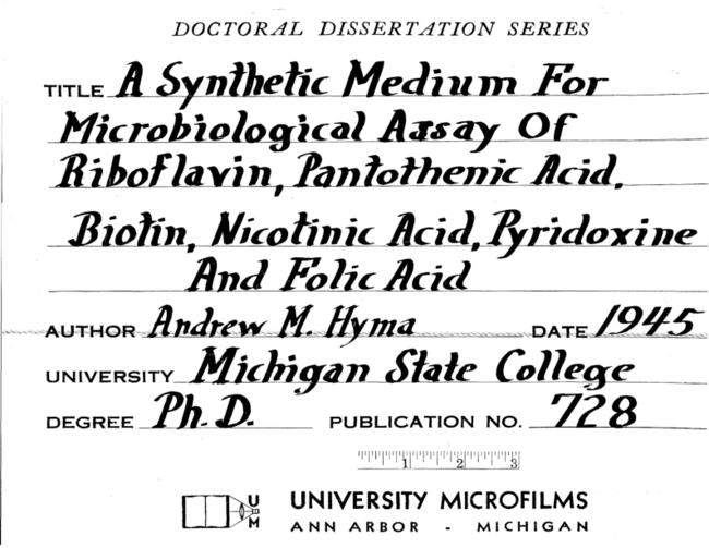 a synthetic medium for microbiological assay of riboflavin, pantothenic acid, biotin, nicotinic acid, pyridoxine and folic acid