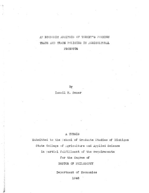 An economic analysis of Turkey's foreign trade and trade policies in agricultural products