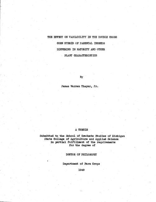 The effect on variability in the double cross corn hybrid of parental inbreds differing in maturity and other plant characteristics