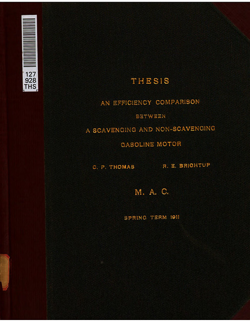An efficiency comparison between a scavenging and non-scavenging gasolene motor