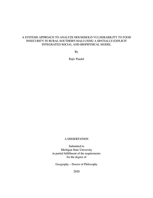 A systems approach to analyze household vulnerability to food insecurity in rural southern mali using a spatially-explicit integrated social and biophysical model