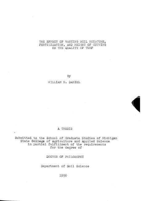 The effect of varying soil moisture, fertilization, and height of cutting on the quality of turf