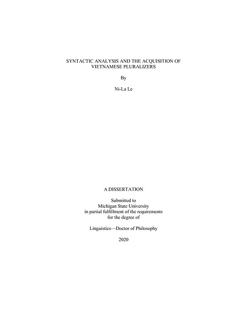 Syntactic analysis and the acquisition of vietnamese pluralizers