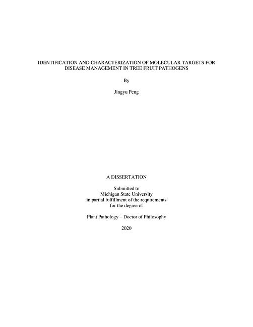 Identification and characterization of molecular targets for disease management in tree fruit pathogens