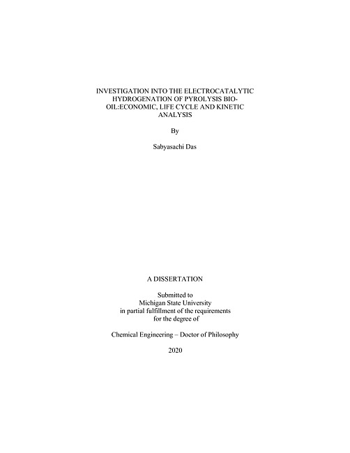 Investigation into the electrocatalytic hydrogenation of pyrolysis bio-oil : economic, life cycle and kinetic analysis