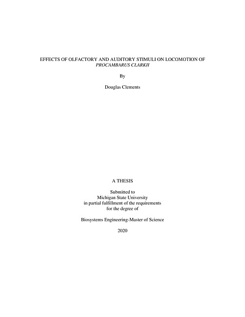 Effects of olfactory and auditory stimuli on locomotion of procambarus clarkii