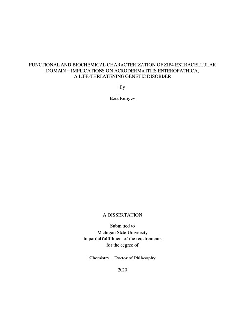 Functional and biochemical characterization of zip4 extracellular domain - implications on acrodermatitis enteropathica, a life-threatening genetic disorder