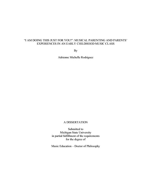 "i am doing this just for you!" : musical parenting and parents' experiences in an early childhood music class