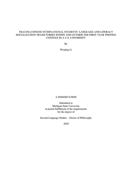 Tracing chinese international students' language and literacy socialization trajectories within and outside the first-year writing context in a u.s. university