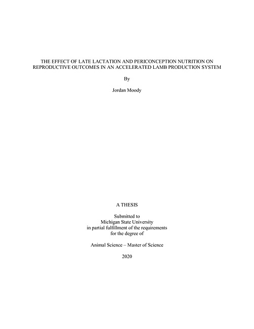 THE EFFECT OF LATE LACTATION AND PERICONCEPTION NUTRITION ON REPRODUCTIVE OUTCOMES IN AN ACCELERATED LAMB PRODUCTION SYSTEM