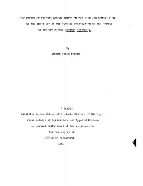 The effect of various foliar sprays on the size and composition of the fruit and on the rate of respiration of the leaves of the red cherry (Prunus cerasus L.)