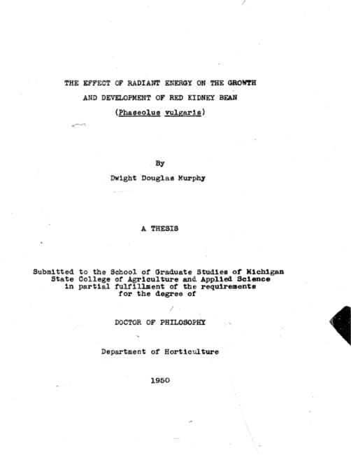 The effect of radiant energy on the growth and develpment of red kidney bean (Phaseolus vulgaris)