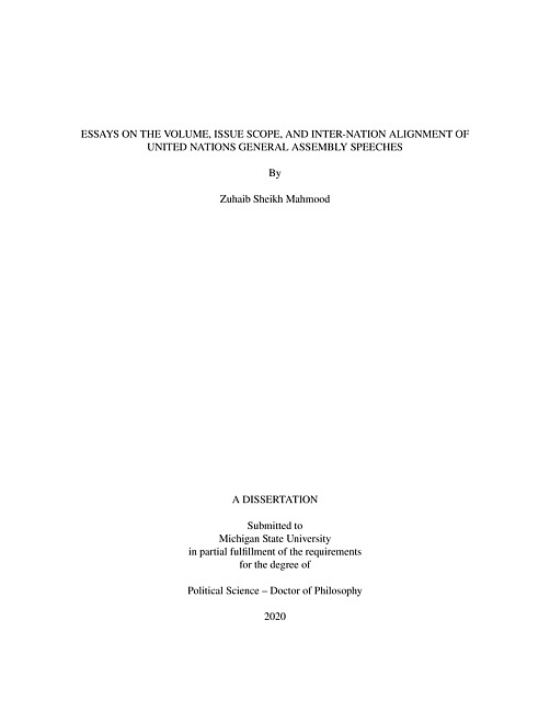 Essays on the volume, issue scope, and inter-nation alignment of United Nations General Assembly speeches