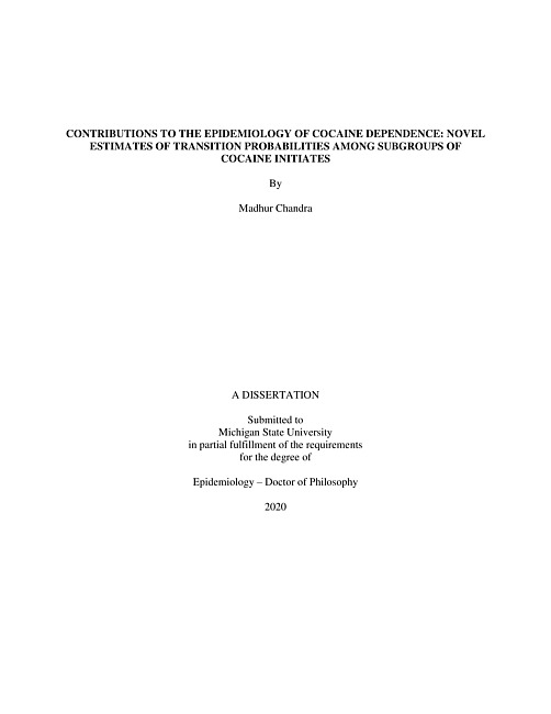 Contributions to the epidemiology of cocaine dependence : novel estimates of transition probabilities among subgroups of cocaine initiates