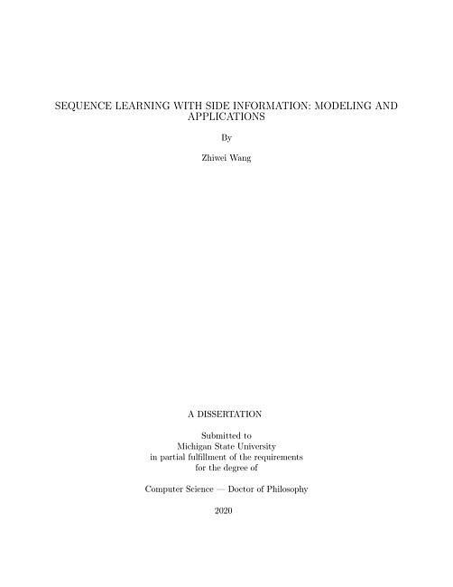 Sequential data is ubiquitous and modeling sequential data has been one of the most long-standing computer science problems. The goal of sequence modeling is to represent a sequence with a low-dimensional dense vector that incorporates as much information as possible. A fundamental type of information contained in sequences is the sequential dependency and a large body of research has been devoted to designing effective ways to capture it. Recently, sequence learning models such as recurrent neural networks (RNNs), temporal convolutional networks, and Transformer have gained tremendous popularity in modeling sequential data. Equipped with effective structures such as gating mechanisms, large receptive fields, and attention mechanisms, these models have achieved great success in many applications of a wide range of fields.However, besides the sequential dependency, sequences also exhibit side information that remains under-explored. Thus, in the thesis, we study the problem of sequence learning with side information. Specifically, we present our efforts devoted to building sequence learning models to effectively and efficiently capture side information that is commonly seen in sequential data. In addition, we show that side information can play an important role in sequence learning tasks as it can provide rich information that is complementary to the sequential dependency. More importantly, we apply our proposed models in various real-world applications and have achieved promising results.