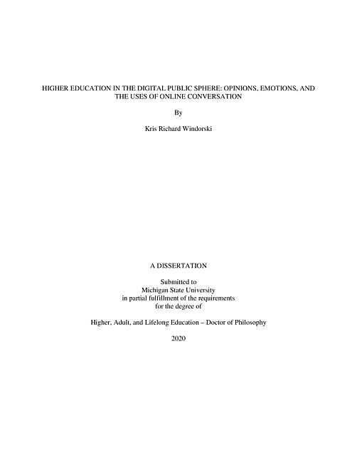 Higher education in the digital public sphere : opinions, emotions, and the uses of online conversation