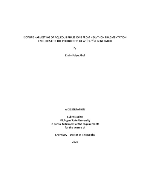ISOTOPE HARVESTING OF AQUEOUS PHASE IONS FROM HEAVY-ION FRAGMENTATION FACILITIES FOR THE PRODUCTION OF A Ca-47/Sc-47 GENERATOR